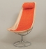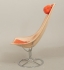Formgiven 1965, stomme i kromat stål, sits i linne, med lös klädsel och nackkudde i ulltextil. Lagad i stomme, för övrigt åldersrelaterat bruksslitage.