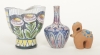 3 delar, 2 vaser Tilgmans, höjd 15 - 16 cm, samt figurin Britt-Louise Sundell, Gustavsberg, höjd 10 cm. Smärre bruksslitage, men veckade vasen med tillverkningsdefekt/hårsprickor.