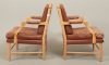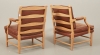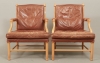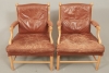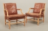 Ett par, stomme i trä, sitsar samt armlän i läder, bruksslitage, läder med ställvis slitage.