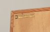 Ek, 2-delad, 4 utdragslådor, etikettmärkt. 68 x 46 cm, höjd 66/184 cm bruksslitage, underdel med fläck/skada (se bild).