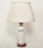 Nyare tillverkning, dekor i polykroma färger med påfågel mm, samt kalligrafi, höjd inkl. skärm 64 cm, inga anmärkningar