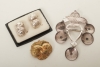 En till man, en till kvinna, möjligen ej kompletta. Dräktsmycken (ligger i vitrin), medföljer, varav manschettknappar, samt en brosch i silver.