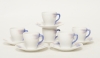 För Rörstrand, 6 koppar med fat, benporslin med reliefdekor av trollsländor, höjd kopp 6 cm, bruksslitage, koppar med nagg/sprickor förekommer.
