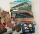 Trafo Märklin, vagnar, Lima, Roco, skenor, samt byggnader. Slitage.