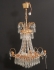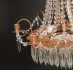 Nyare tillverkning, 1 + 5 elektriska ljuspunkter, hållare för 5 levande ljus, höjd exkl upphängning ca 60 cm. Smärre bruksslitage.