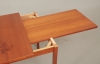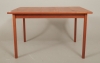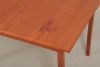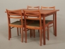Matbord, samt 4 stolar, 120 x 80 cm, höjd 73 cm, 2 utdrag á 45 cm. Bruksslitage, bord med fläck på skiva, stolar med torr stoppning. Bordet märkt, ej stolar.