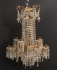 2 + 4 elektriska ljuspunkter, samt hållare för 15 levande ljus, höjd exkl upphängning ca 90 cm, saknar vissa prismor, bruksslitage.