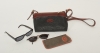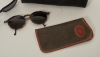 Mindre handväska i präglat läder, logomärkt mässingsplakett med numrering: 287693, 20 x 12 cm, smärre bruksslitage. 2 par solglasögon, varav ett par i originaletui.