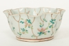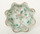Celadonglasyr med dekor av blommor samt insekter, vågig kant, bär sigillmärke, stämplat sex karaktärers märke “Da Qing Tongzhi Nian Zhi”.diam. 14 cm, höjd 6,5 cm, obetydlig nagg
