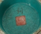 Dekor i emaljfärger, sigillmärkt, handskrivet sex karaktärers märke “Da Qing Tongzhi Nian Zhi” (1862-1874) och möjligen period, längd 16 cm, smärre ytslitage, obetydlig nagg