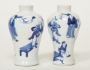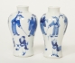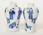 Ett par, dekor i underglasyrblått med figurer, bär 4-karaktärsmärke i botten, höjd 11,5 cm, bra skick