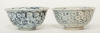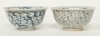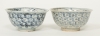 Ett par, Cheng Hua 1465-1487, bikupemönster i underglasyrblått, insida med dubbelvajra, diam. 14,5 cm, skador
