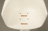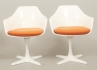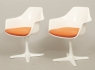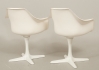 1960-tal, bord i vitlackerad metall, skiva i bemålat trä, diam, 105 cm, höjd 73, smärre bruksslitage, 4 stolar, stomme i glasfiber, dynor i textil, dynor med fläckar, en dyna saknas, för övrigt smärre bruksslitage. Alla märkta Arkana
