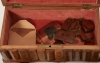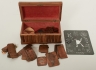 Mått skrin, 23 x 12 cm, höjd 11 cm. innehåller stencilier i koppar.