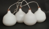 4 st kupor i opakt glas. Detaljer i teak. Höjd exkl. upphängning 20 cm, smärre bruksslitage men avklippta takkontakter.