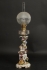 Porslin med oljehus i rutslipad kristall, funktionsduglig, brännrörshöjd 72 cm, smärre blomnagg annars fint skick