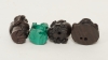 4 st, trä, samt möjligen jade, delvis signerade, höjd 4,5 - 5,5 cm, smärre slitage