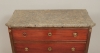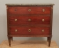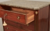 1800-talets första hälft, mahogny, 3 utdragslådor, handhuggen marmorskiva, detaljer i mässing, 92 x 48 cm, höjd 87 cm.