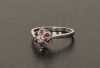 Med en diamant på ca 0,1 karat, samt 6 st mindre rubiner, strl- 16,5, tot. vikt 3,2 gram, smärre slitage