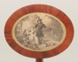 Mahogny, glasskiva med underliggande koppartryck, 64 x 50 cm, höjd 79 cm, smärre slitage