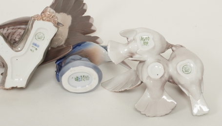 3 st, i form av fåglar, höjd 11 - 21 cm, smärre bruksslitage.
