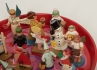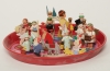 18 delar, bemålat trä, vissa delar ljusstakar med hållare för smala ljus. Bricka medföljer, en ängel med skada (saknar arm)