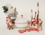Grötkarott, Göteborg (med spricka), julgranshängen, samt tomtar. Högsta höjd 32 cm.