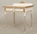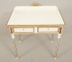 2 utdragslådor, senare bemålning, 81 x 53 cm, höjd ca 85 cm. Bruksslitage, färgskav, skiva med fläckar.