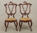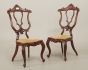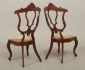Ett par, med tygklädda sitsar, bruksslitage, mindre skador förekommer, lösa kantband.