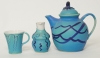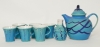 Tekanna, 6 muggar, samt mjölkkanna, signerad Marc, högsta höjd 23 cm, smärre bruksslitage.