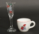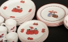 6 mattallrikar, diam 23,5 cm, 4 tallrikar, diam 21,5 cm, 4 assietter, diam 18 cm, 2 grötskålar, 4 snapsglas, 12 glöggmuggar, smärre bruksslitage, krackeleringar förekommer.