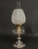 Fot i vitmetall, oljehus i slipad kristall, 20 linjers brännare, funktionsduglig, brännrörshöjd 57 cm, fint skick