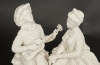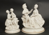 2 st figurgrupper i biskviporslin, glaserad bas med gulddekor. Märkt Marcolin på baksidan, stämpelmärkt med krönt N i botten. Höjd 24 - 30 cm, smärre bruksslitage, men enstaka minimala nagg kan förekomma.