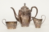 Kaffekanna, sockerskål, samt gräddkanna, silver. Stämplat K.A, höjd kaffekanna 21 cm, bruksslitage. Tot.vikt 835 gram.