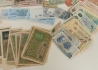 42 st 5-kr sedlar, 12 st 10-kr, 1 st 100 kr, 3 st 50 kr, 2 st 2 pound, 2 st 10 Nkr, Norge, 7 st 10 mark Tyskland mm