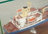 I monter, tanker byggd i Helsingfors, modell byggd av Rolf Pagel. Modell 112 cm lång, mått hela monter 124 x 28 cm, höjd 107 cm. Smärre bruksslitage.