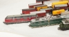 5 st Lok: 1306, 1413, 11412, E 44056 samt V200035. 23 st vagnar, samt skenor. Slitage samt skador förekommer.