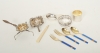 Tesilar, servettringar, samt 4 st dessertbestick med emalj, tot. vikt 250 gram