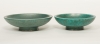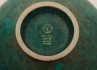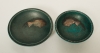 Två st, stengods med silverdekor i form av fiskar. Diameter 15 - 18 cm. Bruksslitage.