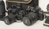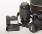 Nikon F.75, objektiv Sigma hyper zoom, 28-300 mm, Nikon F.60, objektiv AF 28-80 mm, objektiv AF, 75-240 mm. Minox 35 ML, blixt MF 35 st.