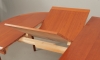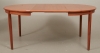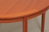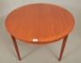 Teak, diam 117 cm, höjd 73 cm, en iläggsskiva á 59 cm, smärre bruksslitage.