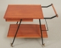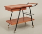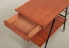 Teak, med detaljer i svart metall, utdragslåda i sarg, 60 x 45 cm, höjd 67 cm. Smärre bruksslitage.
