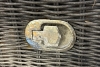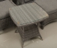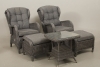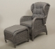 2 st fåtöljer med fotpallar samt bord. Knapp/handtag ärgat.