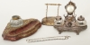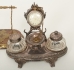 Skriv- samt brevställ med mässingsbeslag, ej komplett, fickursställ, med fickur, bruksslitage.