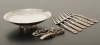 Mindre skål, plockgafflar, samt armband (defekt), vikt 131 gram.