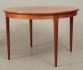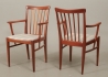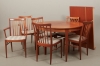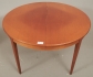 Mahogny, matbord, "Ambassadör", samt 4 + 2 stolar, "Herrgården", diam 115 cm, höjd 75 cm, 2 ilägg á 55 cm, smärre bruksslitage, men skivan något solblekt.