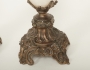 Hållare för 5 levande ljus vardera, metall, samt alabaster, höjd 62 cm, bruksslitage.