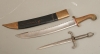2 st, varav 1 st Russian Sawback sword (totallängd 68 cm), samt 1st större dolk. Slitage samt skador förekommer.