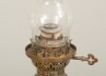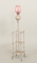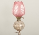 Stomme i vitmetall, kupa i rosafärgat glas, höjd 157 cm, smärre bruksslitage, men brännrör med spricka.