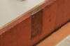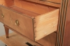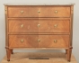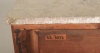 1800-talets början, mahogny med mässingsdetaljer, 3 utdragslådor, skiva i kalksten, snedställda kannelerade hörnstolpar, 107 x 48 cm, höjd ca 90 cm. Åldersrelaterat bruksslitage, ställvisa skador.